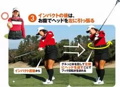 インテンショナル打ち方③-1|インパクトの後はお腹でヘッドを左に引っ張る