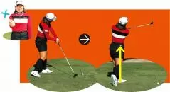 体が起き上がることで球にスライス回転がかかるため、スライスになりやすい。ヘッドをフォローで左に引っ張る意識を持つことで体の起き上がりを防げる。