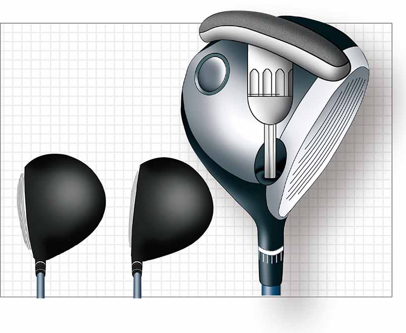 さて、ウッドではどうか。木製ヘッドの頃は、ソールやフェースを削ることで対処していたが、メタルヘッドになるとシャフトの挿し込む角度で調整することが主流になった。パワーヒッターはロフトを立てて、ややオープンフェースにするためにシャフトをホーゼルに対して右から挿す、という具合だ。
