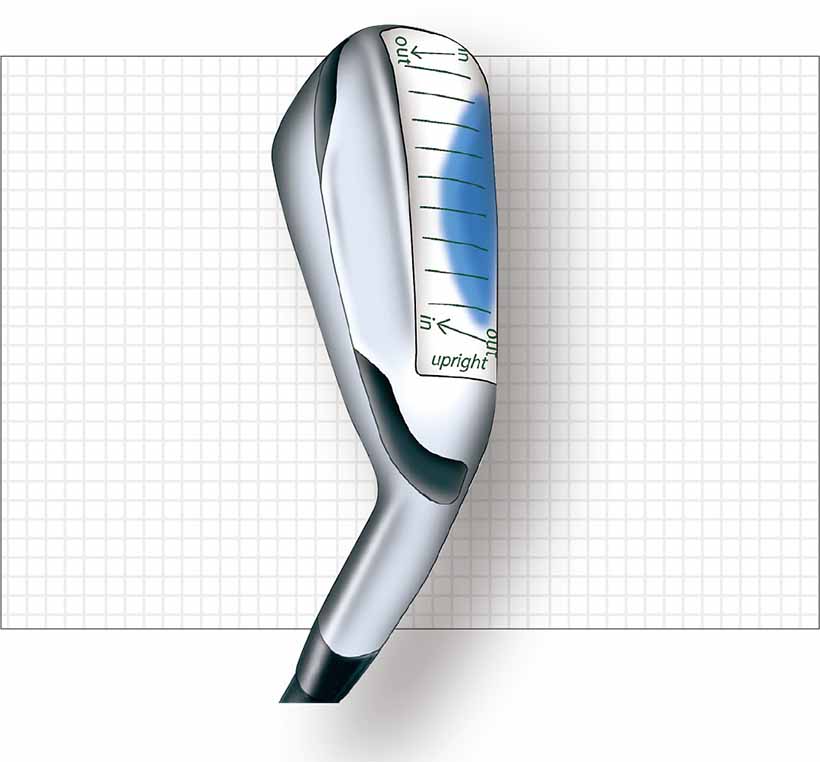 クラブフィッティングの世界ではソールに感圧シールを貼って、実際の試打を行ってライ角を見定める。アナログ的だが、いまだにこれより簡便で確かな計測方法はない。プレーヤーの番手ごとの打ち方も変われば、クラブにも製造誤差、個体差があり、実際に打ってみるしか分からないからだ。
