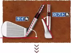 ライ角は、ソールを水平に置いた面とシャフト軸線が作る角度。 クラブレングスによって違いが出てくる。ロフト角はシャフト軸線に対してフェース面が上向く角度。
