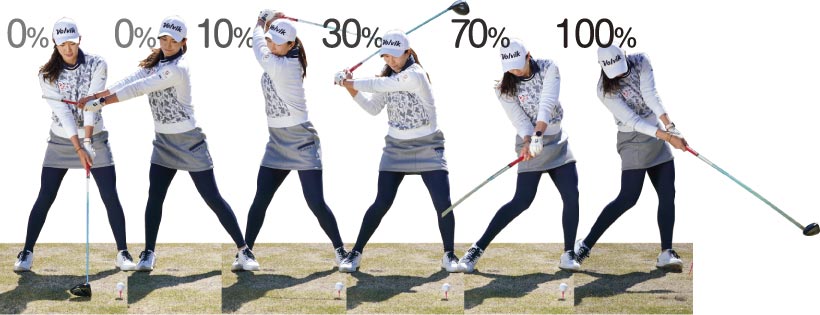 最近は「腕を脱力して、ゆるゆるで打つ」というレッスンもありますし、実際に女子プロでもあまり力を入れないで方向性重視のスイングをしている人もいます。しかし、ずっと脱力したままでは最大限の飛距離は出ません。