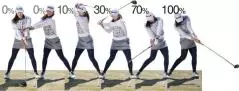 そして、ダウンスイングから徐々に力を入れて、ハーフウェイダウンで70%くらい、インパクトの瞬間に100%の力を入れると最も飛距離が出るスイングになります。