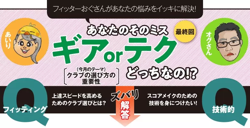 オグさん そうだね。今は雑誌やインターネットで情報を集めやすくなったけれど、自分に合ったクラブとなると一人で揃えるのは難しいところはあるね。自分に合ったクラブも現在の自分の欠点を補ってくれるクラブを選ぶのか、それとも上達を促してくれるクラブを選ぶのかでモデルが変わってくるし。