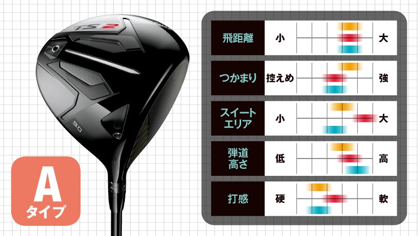 前作のTS2は球のつかまりを重視、TS3は操作性重視の特性でしたが、モデルチェンジで大きく変わりました、Tsi2は重心角と軸周りMOIが大幅にUPしてオートマチックなタイプに変身。Tsi3も重心角と軸周りMOIがUP。操作性重視から、直進性重視に変身しています。