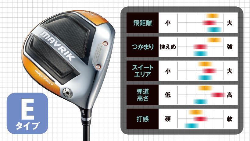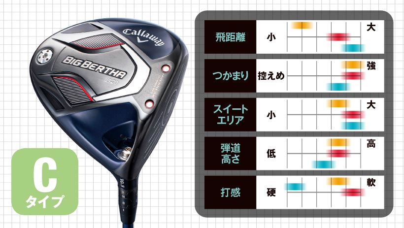 しかし「マーベリックシリーズ」以降、重心角が大きいモデルも増え、特に「ビッグバーサ」は球のつかまり重視のCタイプとなっています。「マーベリックシリーズ」と合わせれば、ほぼすべてのタイプが揃いました。