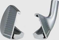 『オノフ赤FF』のLカップフェースは中間から下部が強度限界の薄さ。フェース上部はさらに薄く、その間にパワートレンチといわれるリブを設けることで、最大たわみ点をアイアンの実打点まで下げています。そのおかげで反発効率が上がり飛距離がアップ。また、トップ気味のミスヒットでも強い球が打てるようになりました。