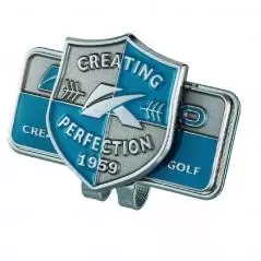 | 特徴 | マグネットが付いたクリップタイプの台座にコインタイプのマーカーがセットされたボールマーカー。ボールマーカーの中では最もポピュラーなモデルとして定着しています。キャップのバイザーへの装着が可能なクリップタイプ仕様です。 |
