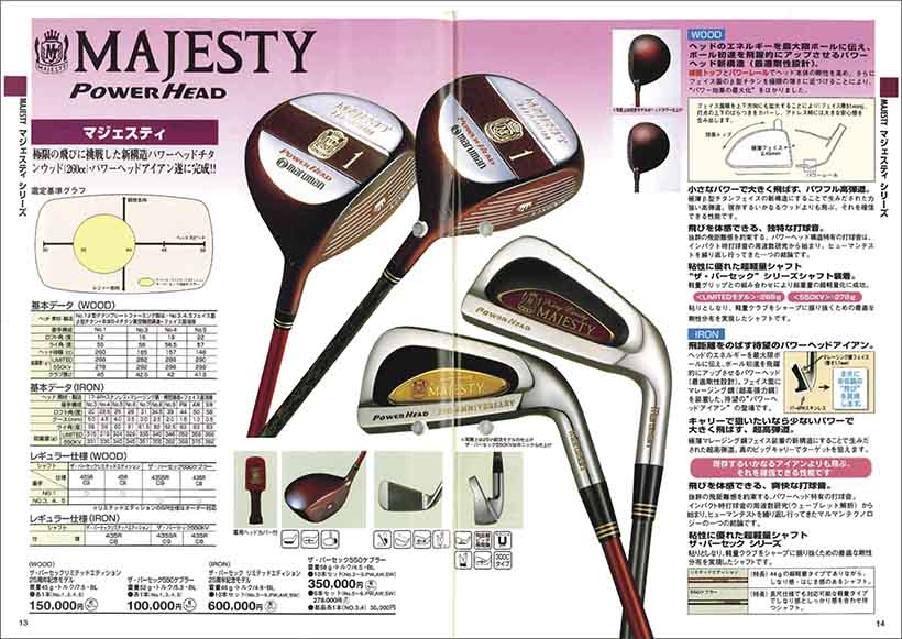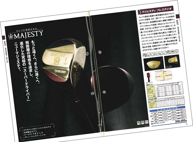 ただ、「MAJESTY」と言えば現在はゴールドのイメージがあるが、このドライバーのヘッドはダーク系の玉虫色に光る塗料で塗装され、高級感を演出していた。この20周年記念モデルは、200セット限定のフルセット(ドライバー、3W、4W、5W、アイアン#3~SW)200万円で販売された。超高額セットではあったが、百貨店、専門店で、あっという間に完売したとのことだ。