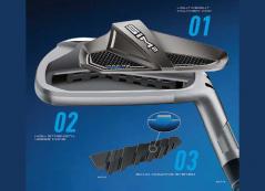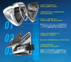 SIM2 MAXアイアンでは飛距離と寛容性を一つに融合させた“キャップバックデザイン“を採用。SIM MAXアイアンで採用されていたスピードブリッジを超える機能を実現し、中空アイアンにおける新構造を具現化した。中空構造のアイアンの要である肉薄フェースとボディの強度を向上させ、貫通型スピードポケットと共にボールの初速を向上させる。キャップバックデザインにより、さらにソフトなエコーダンピングシステムを搭載 。ヒールからトゥまでに搭載されたエコーダンピングが、インパクトの衝撃によるクラブの振動を吸収しフォージドアイアンのような打感を実現している。
