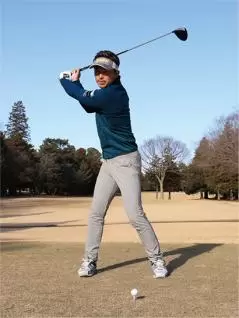 両手のどこに力を入れるかというと、左手の小指、薬指、中指の3本と、右手の中指と薬指の2本の計5本です。といってもこの5本にギュッと力を込めるわけではありません。要はフィット感が大事なのです。指をグリップに巻きつけるようにして、締まりが感じられるように握りましょう。軽く素振りしたときに、この5本の指にクラブの重さが感じられれば万全です。両手の親指と人さし指の方に力が入ると肩や腕が硬直して、クラブを上から押さえつけるような構えになりやすく、クラブのスムーズな動きを妨げてしまうことになるのです。