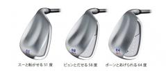 ターゲットに合わせて方向性の出しやすいやさしさを感じさせるヘッド形状とあらゆるインパクト方向でも安定したスピン性能を実現するフェースレーザーミーリング仕上げ。