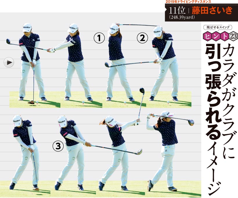 〔飛ばせるスイング ヒント23〕カラダがクラブに引っ張られるイメージ|藤田さいき