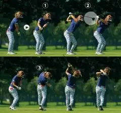穴井詩はバックスイングで思い切りシャットフェースに上げています。そしてトップでクラブヘッドが軽くループを描き、インサイドから振り下ろしてくる。