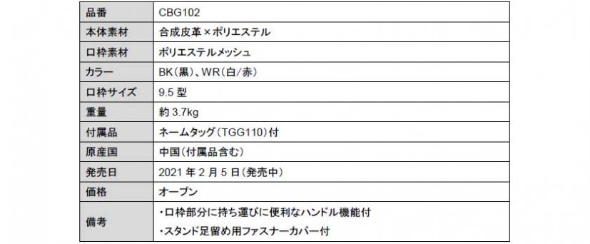 ブリヂストンスポーツからプロモデルシリーズのキャディバッグ「プロレプリカモデルCBG101)」と、機能性に優れた「プロスタンドモデル(CBG102)」、「コーディネイトヘッドカバー(HCG101)」及び「ボストンバッグ(BBG101・102)」が発売中。