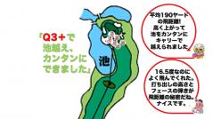 編集O このホールでティショットがここまで飛ばせたら、最高なんだよね。でも、この池越えがいつもパーを阻んでくる。なぜかここに立つとトップしたり、チョロッたりしちゃう。