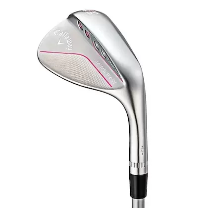 ヘッドにはピンクの差し色、グリップはピンク。リーディングエッジはストレートで、構えやすい印象の顔をしている。見た目はやさしげなデザインだが、性能は本格派。キャロウェイ独自のマイクロフィーチャーによって、優れたスピン性能を発揮する。バックフェースに装着されたタングステンはロフトごとに最適設計されており、フェースを開いて打つ時などにヘッドのブレを軽減、コントロールしやすくなっている。