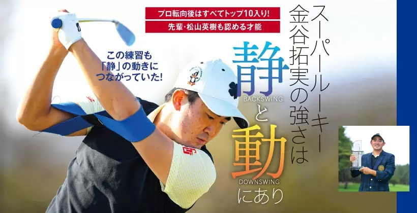 19年にアマチュアとして『マスターズ』に出場したときに初めてトーナメント現場で金谷拓実選手のスイングを見ましたが、そのときはショットの精度が高くて曲がらない、ショットメーカーという印象でした。ドライバーでは確実にフェアウェイキープしてくるし、アイアンでは様々な球筋で狙える選手。そこから進化して、20年シーズンの試合を見ていると、飛距離が伸びていて、パワーアップしているなと感じました。