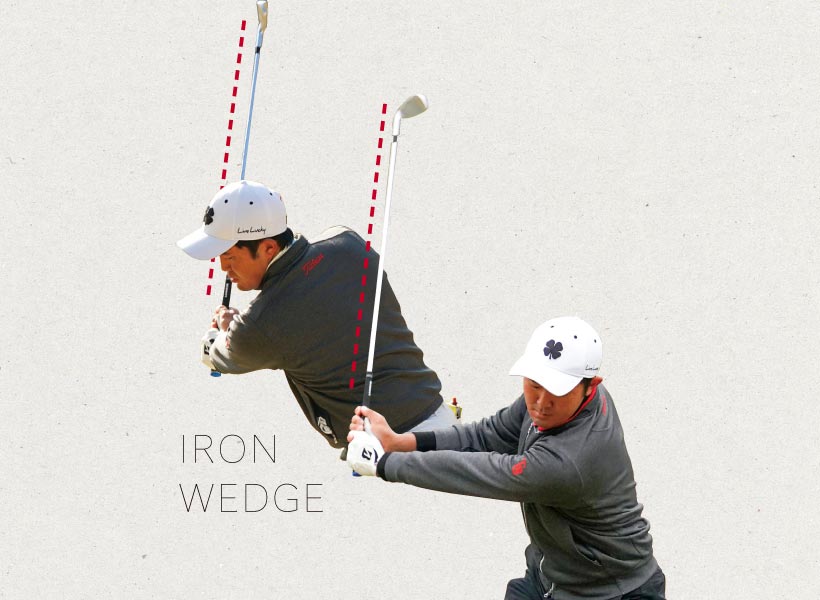アイアンやウエッジでもシャフトを立てている