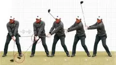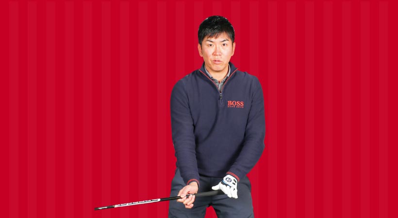 始動直後は、手首だけを急に動かすのではなく、ヘッドを先行させる感覚で両腕と手首の三角形をキープしたまま動かすと、腕と体が一体化しながらシャフトを立てる軌道を作れる。