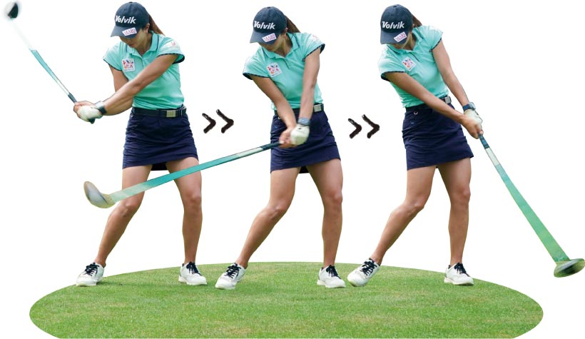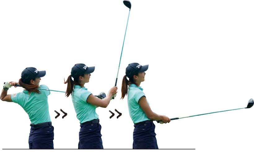 フォローではヘッドと逆方向に引っ張り合う力を!