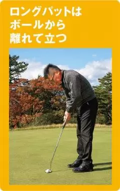 ロングパットはボールから離れて立つ