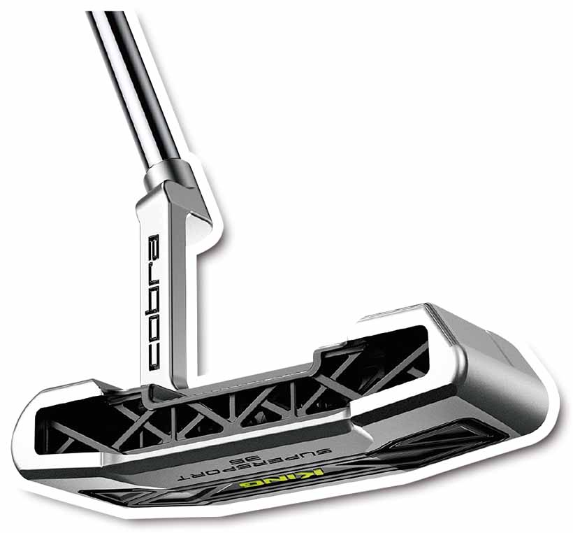 KING SUPERSPORT-35パターは、コブラが3Dプリンティング技術を採用しHPとのチームで開発されたパターです。3Dプリントの特性を生かし、ヘッド本体に複雑な格子構造を持たせることで最大限の慣性モーメントを実現、4°から1°まで段階的にロフトを変化させたSIKフェーステクノロジーも搭載し、正確かつ安定したボールのコロがりを実現します。