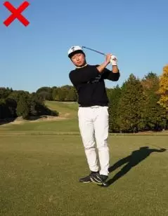 アドレスと同じようにフィニッシュでも上手な人の真似から入るのが近道です。といっても、人間の骨格や柔軟性には個人差があり誰もが同じフォームをとれるわけではありません。また、フィニッシュの形でドローとフェードや球の高さを打ち分けるような高等テクニックにチャレンジする必要もありません。
