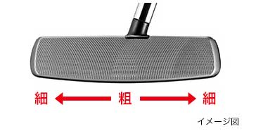 ファース面にグラデーションミリングを採用。中央部は粗く、両サイドにかけて徐々に細かくなるミリングで、センターヒット以外でも転がり距離を安定。