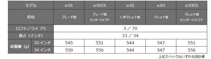 「Silver-Blade α」は」は、2007年の「Silver-Blade」発売から踏襲している異素材のブレードとボディの比重差を活かした深重心と高慣性モーメント設計。また、シルバーのブレードとブラックボディのコントラストによるアライメント効果で構えやすくするなど異素材、複合ヘッドで究極のやさしさを実現している。