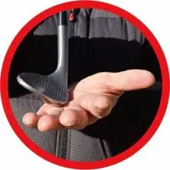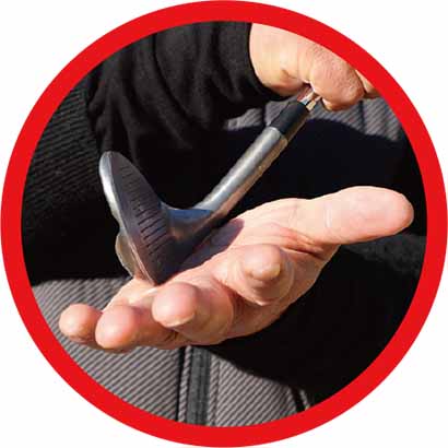 写真右)フェースが閉じたままだとリーディングエッジが刺さりやすい。