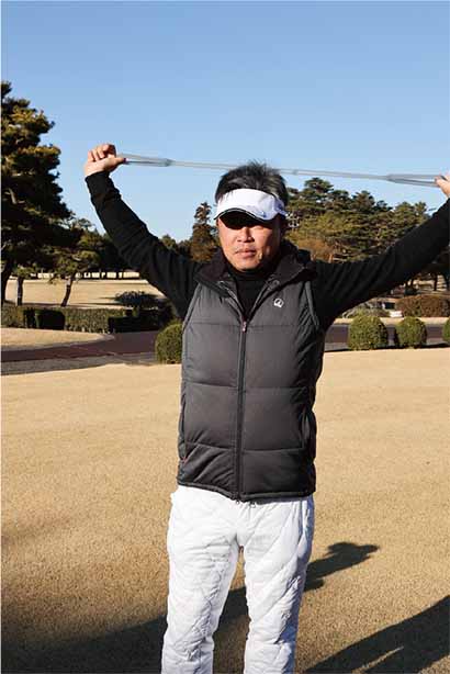 スタートする前や練習する前には、ゴムを使って肩甲骨の周りをほぐすようにしています。