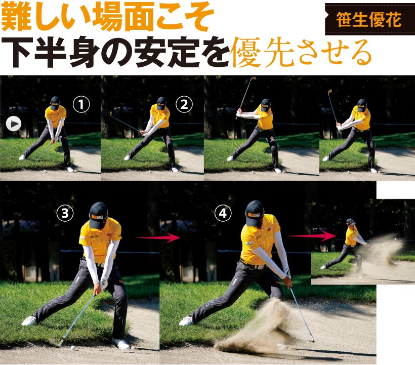 バンカーでは下半身を固めて腕を柔らかく振る