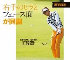 原英莉花選手はアプローチもアイアンと一緒で、ボールを押し込んでいるという感じのスイング。アイアンのところでも話しましたが、これは右手のグリップに秘密があるのです。