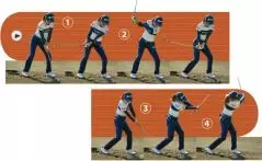 ②スイング中は腕や手をいっさい使わない