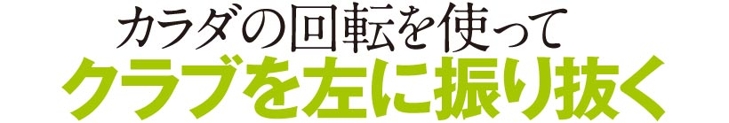 ④カラダをしっかり回転し、クラブを左に振り抜く