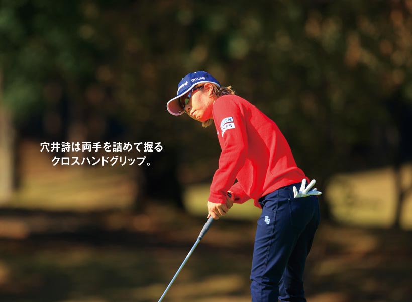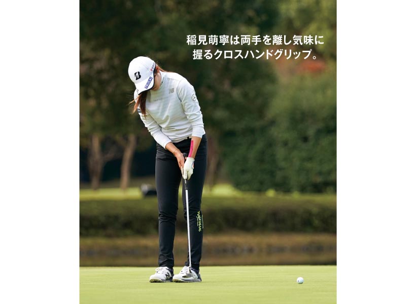 稲見萌寧は両手を離し気味に握るクロスハンドグリップ。