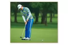 背筋を中心とした体幹でストロークしていて、手首の角度も絶対に変わらない。鈴木選手はフェース面をスクエアにキープしてボールをヒットする技術が高いから、ボールの転がりが伸びるんです。また感覚をとても大事にする人で、パットのスタイルを一つに限定しません。そのときの感覚やイメージでパターを換えたり、グリップを工夫したりしています。コースのグリーンによって、自分でしっくりくる握り方とかパターをチョイスするのもいいでしょう。