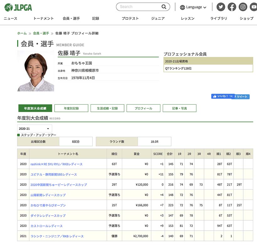 これまで、プロテスト合格からレギュラーツアー、ステップ・アップ・ツアーいずれかで初優勝を飾るまで、最も時間がかかったのは1993年にステップ・アップ・ツアーのコカ・コーラカップに勝った木村成子の16年18日だった。佐藤はこの記録を大幅に塗り替えたわけだ。