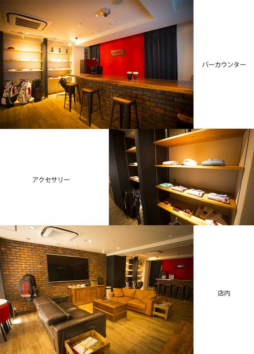 アクセサリーの販売やバーカウンターなども併設されている店内でゆったりとKBSシャフトの世界に浸ってみてはいかがだろうか。
