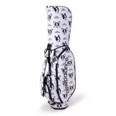 | 特徴 | ボストンテリアとロゴの総柄が可愛いキャディバッグです。インパクトありながら色味を抑えたバイカラーで大人っぽい雰囲気にまとめました。生地は格子状に織り込んで強度を高めたリップストップを採用しています。6つの口枠によりクラブを細かく分けて収納でき、大小様々なポケットがゴルフアイテムの整理整頓に役立ちます。長さ調節可能なショルダーベルトやネームプレート付きもポイント。遠くからでも目立つ総柄デザインはグリーン上でも映え、ゴルフ気分を楽しく盛り上げてくれます。 |