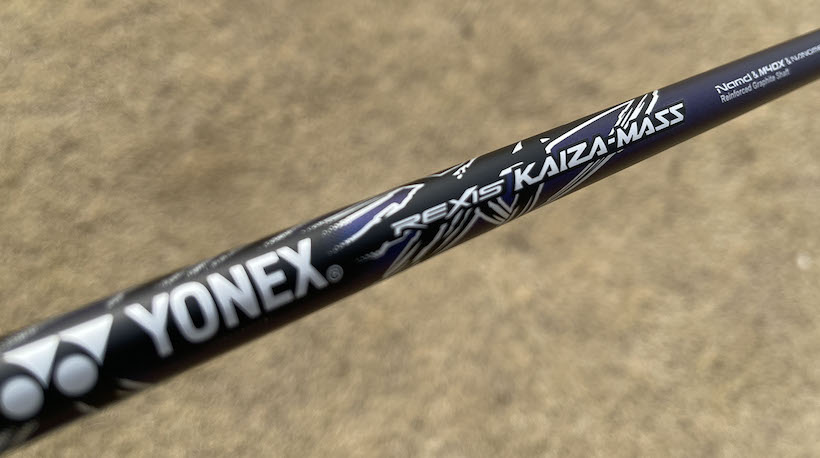 シャフトはカーボンとスチールが用意されていますが、僕が試打させてもらったのはヨネックスオリジナルのREXIS KAIZA-MASSというカーボンシャフト。このシャフトは重量69gでトルク2.5という軽量モデルなのですが、強靭なしなりと急激な復元力を生む「Namd(エヌアムド)」という新次元カーボンを先端から中間部にかけて採用。これによりボール初速のアップと高弾道を実現しています。