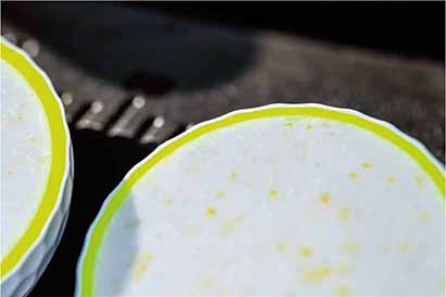 こちらもテスト販売モデルのホワイトとイエローのツートンカラーデザインの「DIVIDE(ディバイド)」。単色デザインよりも転がりが見えやすく、アプローチでのスピンのかかり具合もわかりやすい。