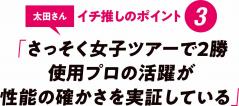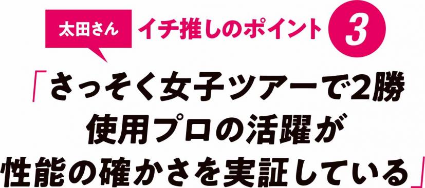 「ショートゲームでのスピン性能の確かさは、スコアに直結するものなので、レベルを問わずオススメできるボールです。ロングショット時の飛距離性能にもすぐれていますし、それに打感の軟らかさと心地良さは万人に好まれるものです」