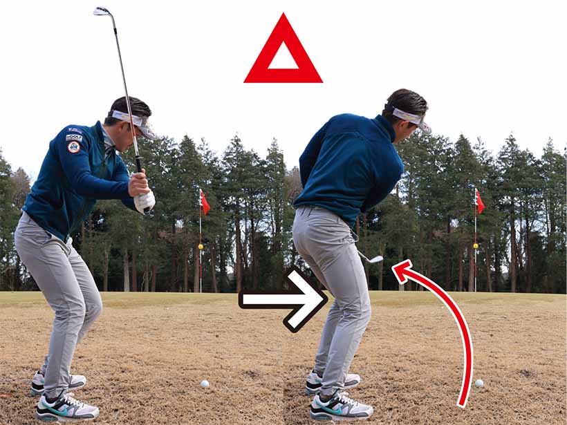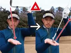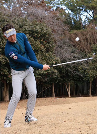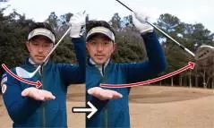 ヘッドを鈍角に入れて、軽くインサイドアウトに振り抜こう