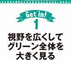 残り100ヤードを切ったら、グリーン全体を見渡し、どのような形状なのかを確認する。視野をできるだけ広くして、全体を大きく見るクセをつけよう。