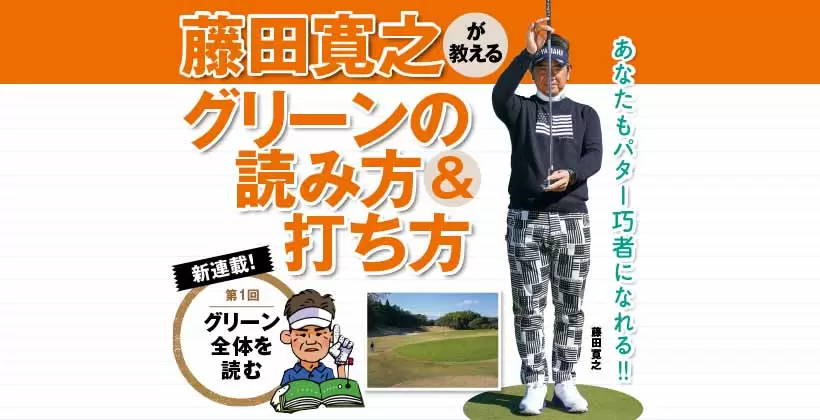 「面」の傾き具合を見れば、全体的なボールの曲がり方が予想でき、ラインの読み間違いが少なくなります。加えて、グリーンの速さも感じ取れるので、タッチが合う。受けグリーンでなくても、「面が奥に向かって傾いているz「面が二つに分かれている」というように、グリーン全体を「面」でとらえることが重要です。