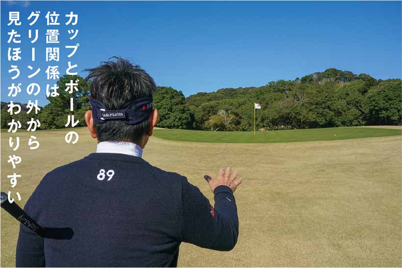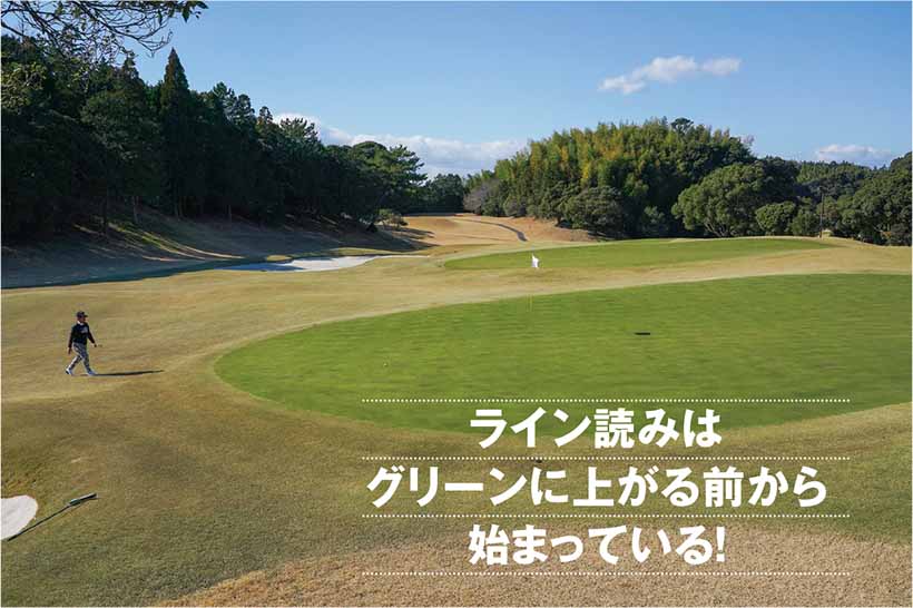 上りか下りかわからなくなるのは、グリーンに上がってからラインを読み始めるのが大きな原因。周りの景色や足もとの傾斜に惑わされたり、錯覚を起こしやすい。