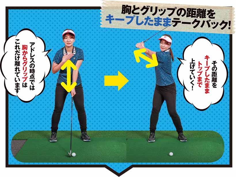 胸とグリップの距離をアドレスから変えない!