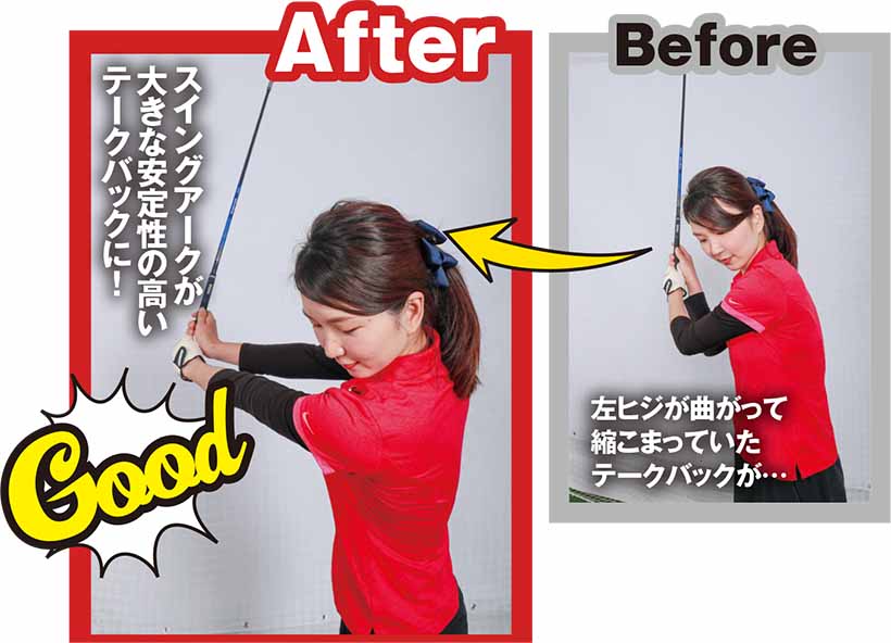 スイングアークが大きな安定性の高いテークバックに!